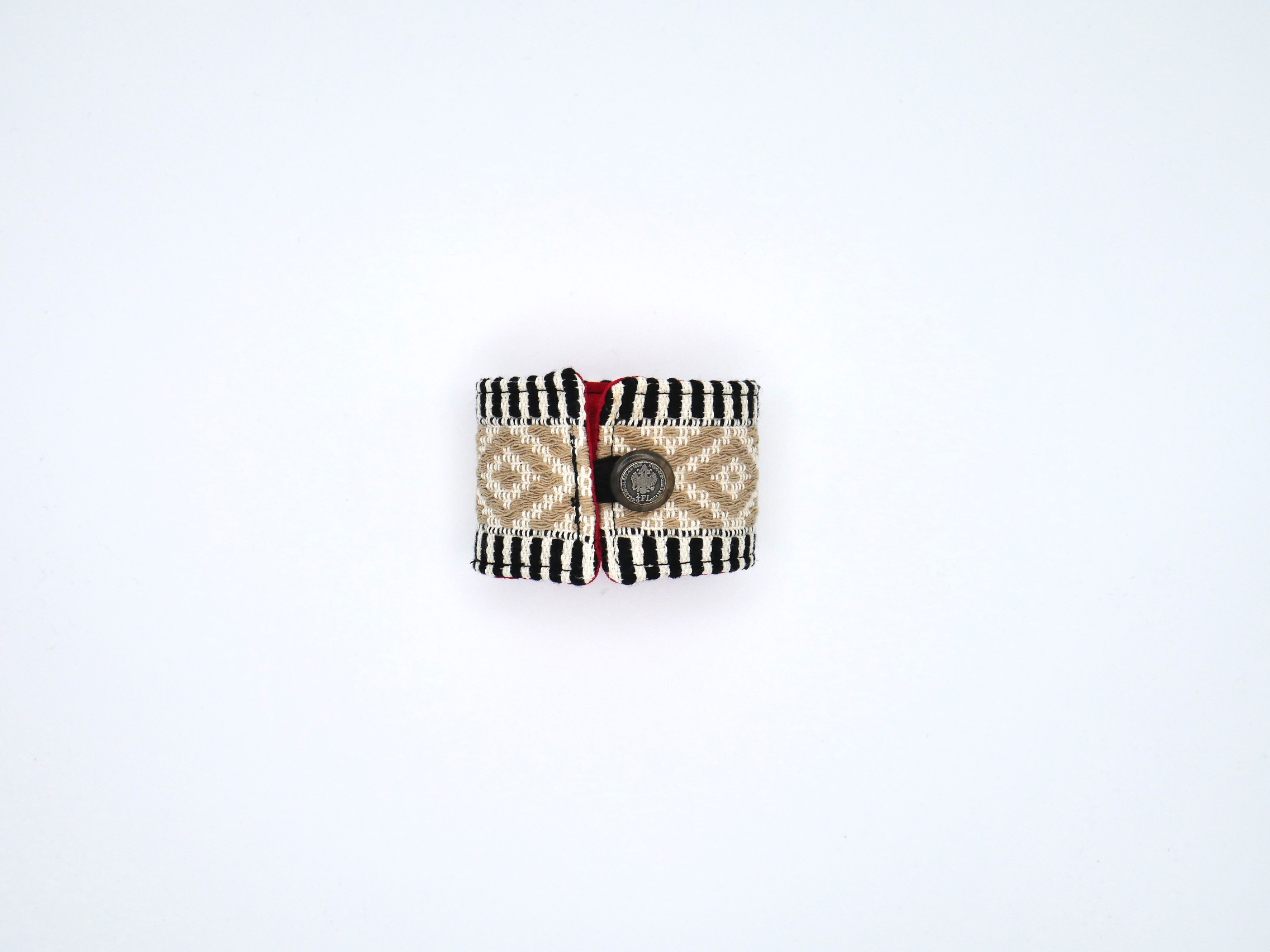 Bracciale in tessuto di Samugheo con chiusura ad asola e bottone vintage.