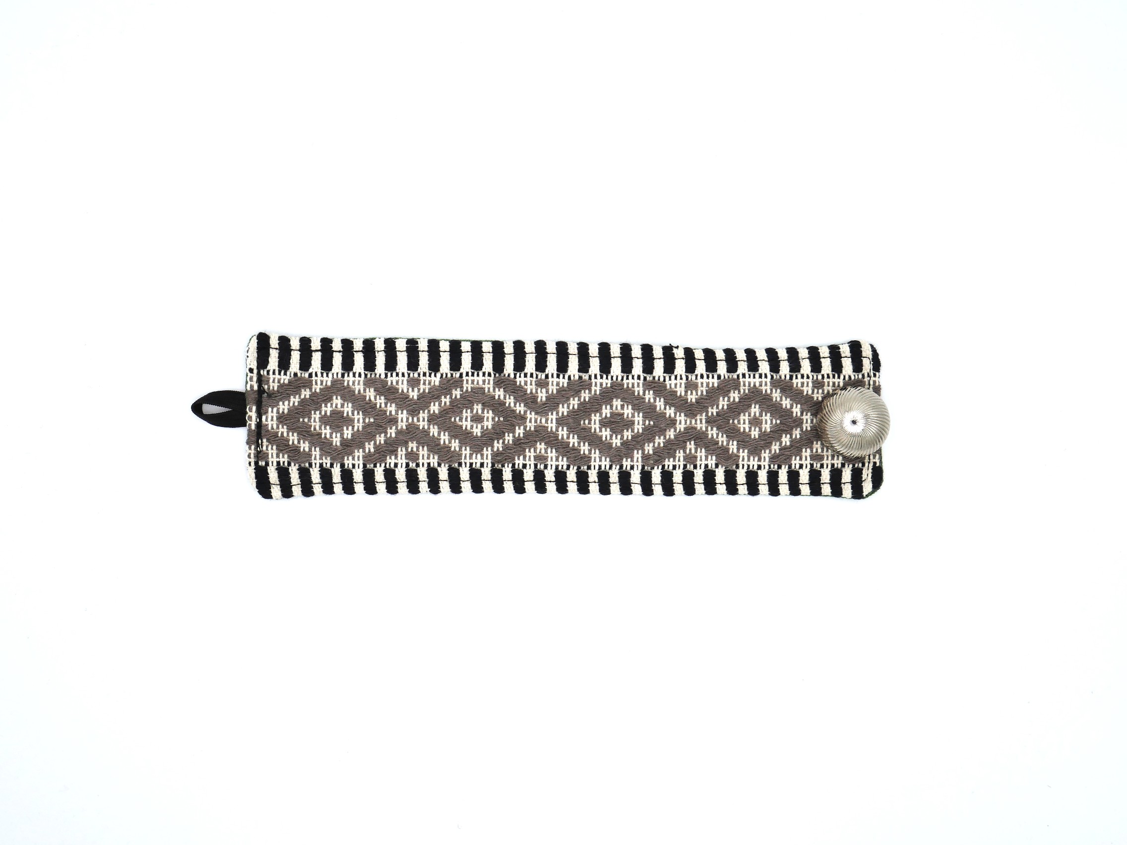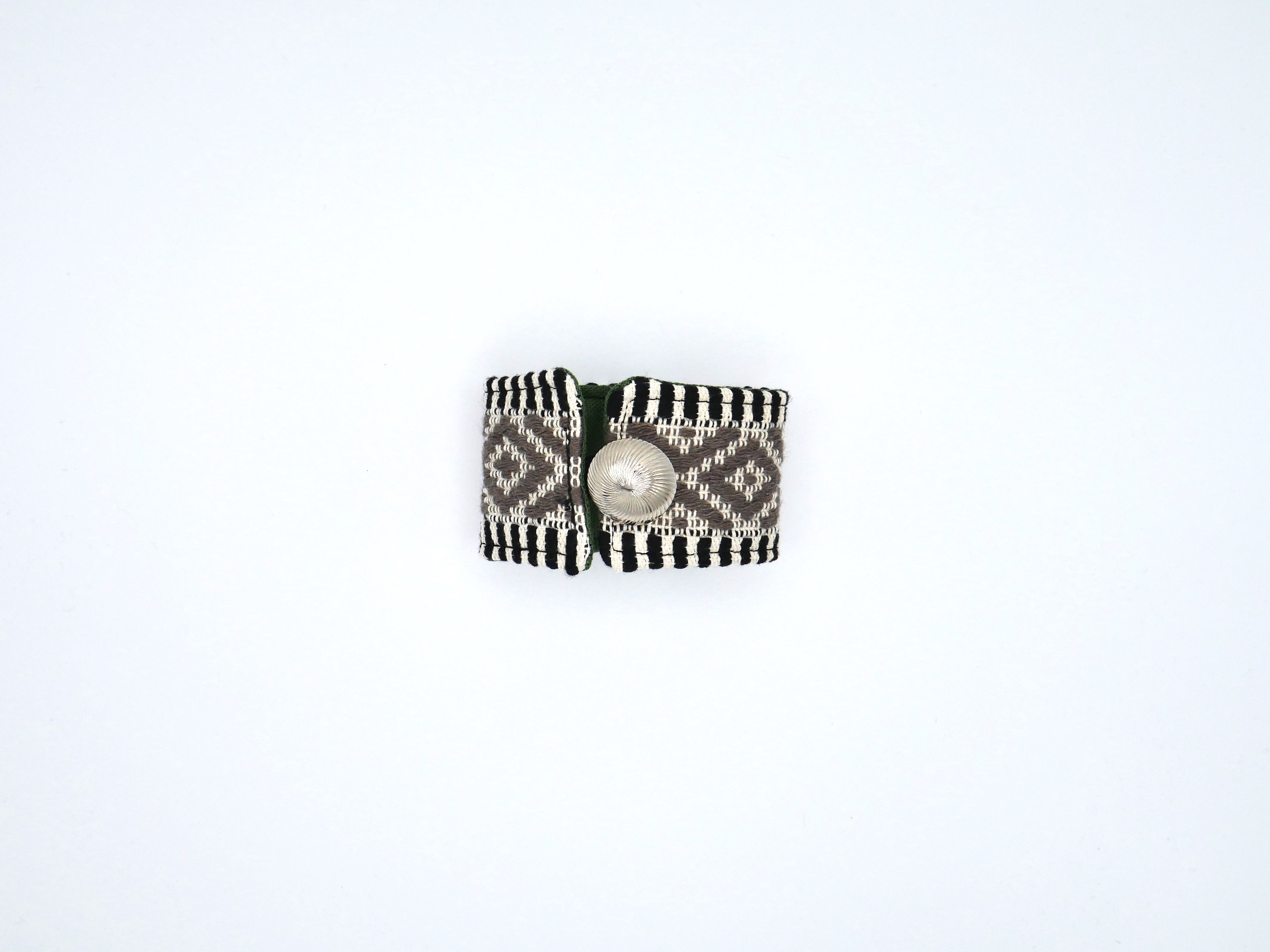 Bracciale in tessuto di Samugheo con chiusura ad asola e bottone vintage.